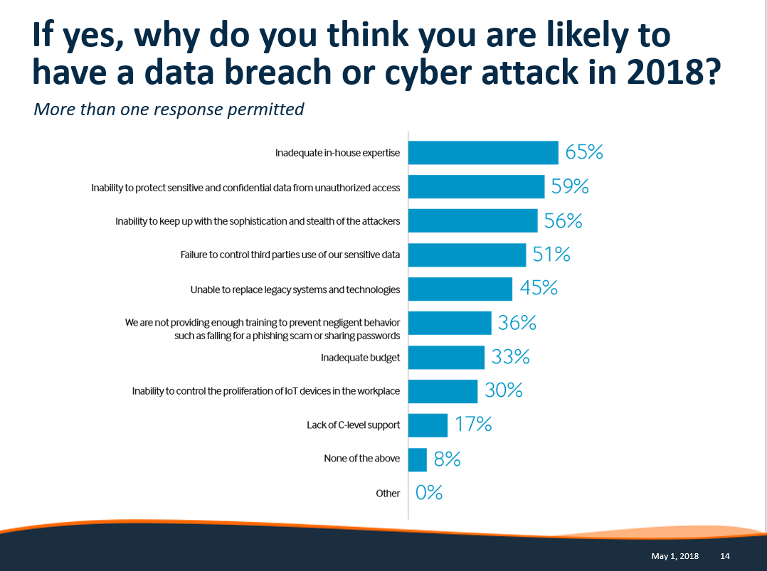 But Ponemon's research went deeper into the pie chart (above) for answers about why cybersecurity leaders expect a breach this year.