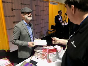 Schneier was getting ready to deliver his keynote address and had just wrapped up signing copies of his latest book, Click Here to Kill Everybody.