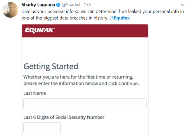 And there was lots of criticism around the company's own "free credit monitoring service" offered and the irony of what Equifax asked for to determine if an individual's data was likely compromised.