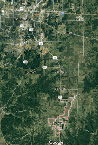 In this real-life scenario, you're in Ashland, Missouri, a small town not far from the University of Missouri-Columbia.