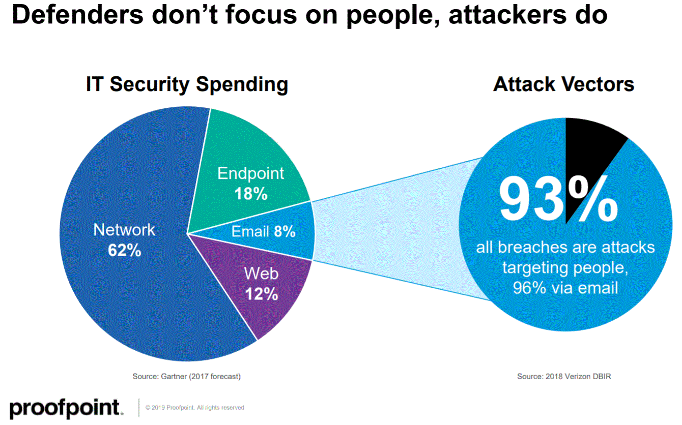"When you look at the attackers and how they're going to go after your organization, the attacks are going to be generally email based. 90%+ of all attacks we see are going to come in from the email vector."