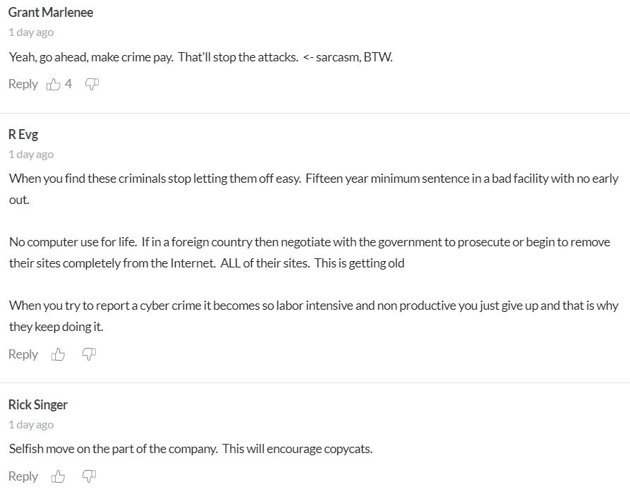 If you organization is hit by a ransomware attack, should you pay? One consideration may be how your company is perceived. Check out these comments from the MarketWatch story about K12's decision to pay: