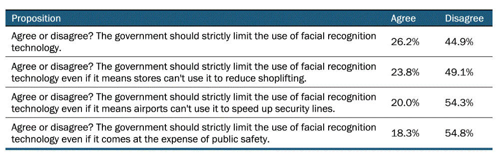 And when public safety is at stake, just 18.3% support strong restrictions of facial recognition.