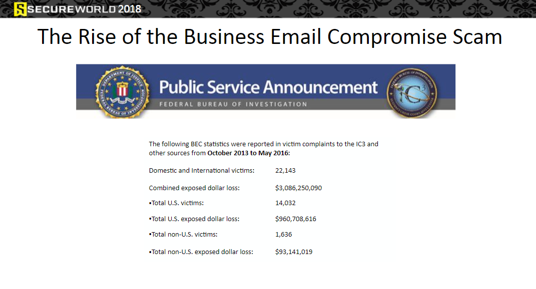 As I said, he painted quite a picture (and this was just a small part) that the risk of BEC is real and the costs are growing.